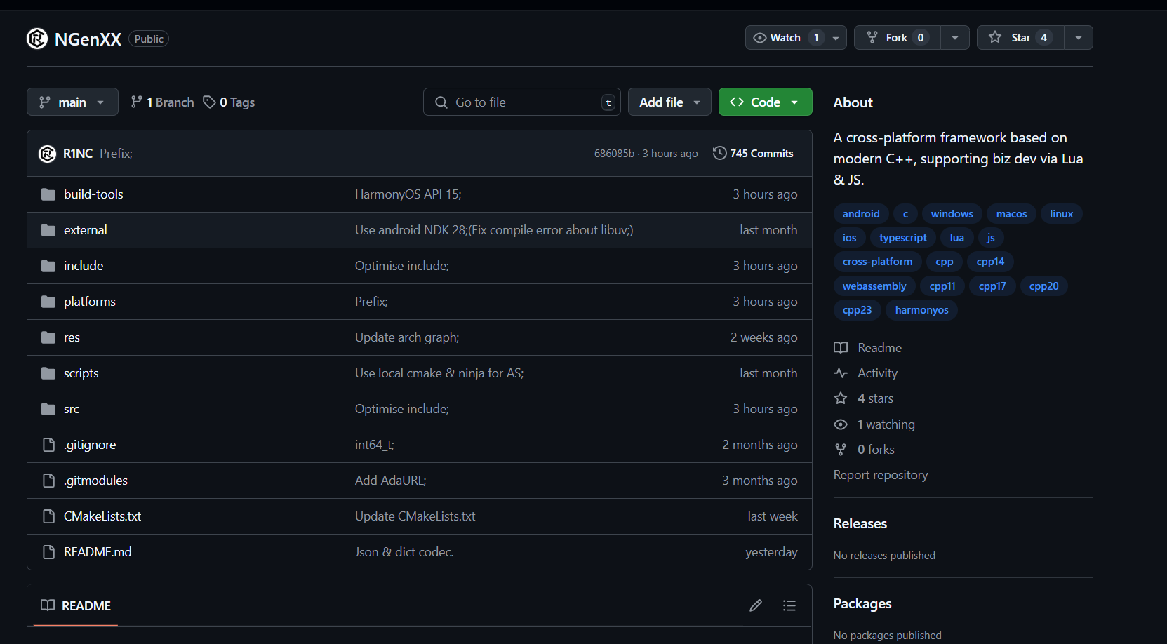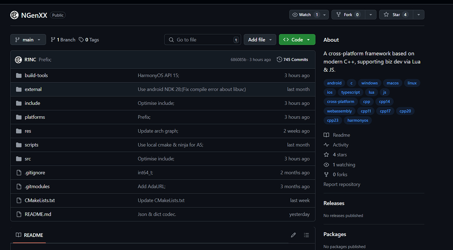 GitHub link: R1NC/NGenXX: A cross-platform framework based on modern C++, supporting biz dev via Lua & JS.